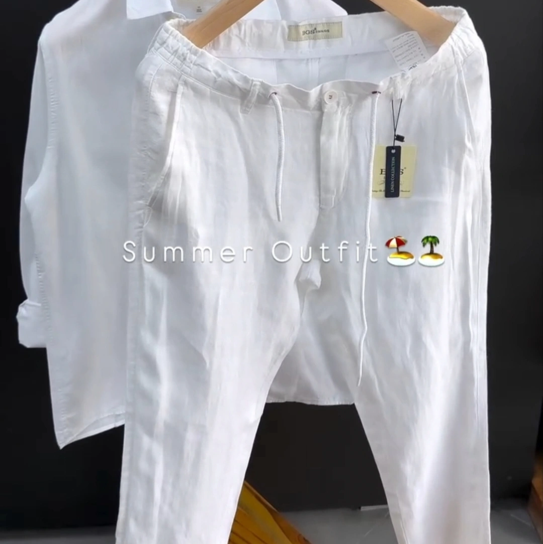 Step into summer with the ultimate combination of comfort and sophistication. Our Essential White Linen Set is meticulously crafted for those who refuse to sacrifice style, even when the temperature rises. This matching shirt and pant duo is designed to be your go-to uniform for every warm-weather occasion.