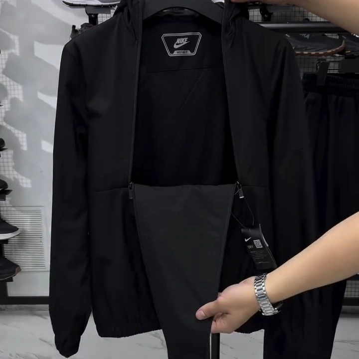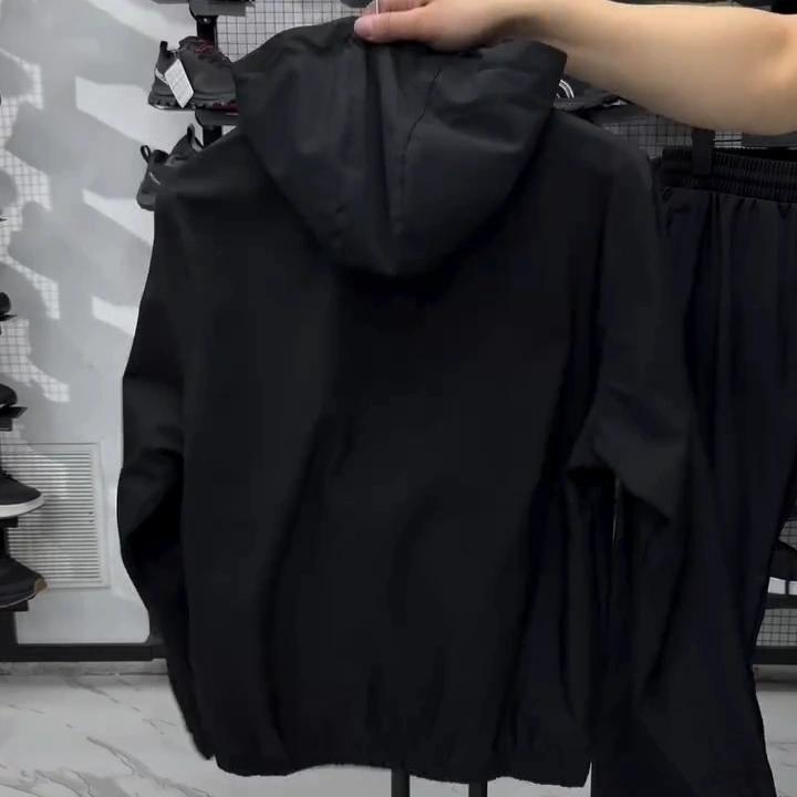 Stay cool and move freely in this summer-ready tracksuit. Made from ultra-light, stretchable, wrinkle fabric, it features a double-layer jacket with breathable inner mesh and a secure velcro pocket, plus single-layer trousers with elastic cuffs and two zipper pockets. Perfect for travel, lounging, or casual days out.